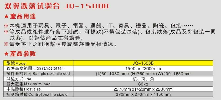 紙箱雙翼跌落試驗臺適用于在搬或運輸過程中,可能有摔落而導致使內部產品受到損壞,事先預防損害,